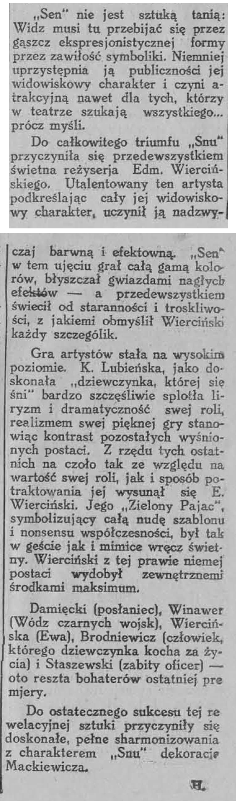 Łódź: Premiera powtórzonej inscenizacji Snu Felicji Kruszewskiej w reżyserii Edmunda Wiercińskiego w Teatrach Miejskich w Łodzi. Edmund Wierciński po raz kolejny gra Zielonego Pajaca. Maria Wiercińska postać Ewy.