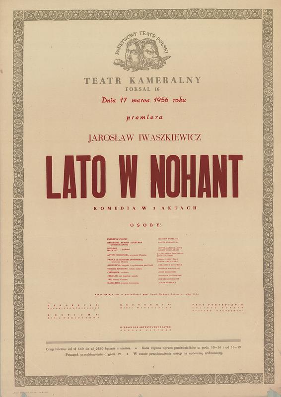 Warszawa, Teatr Polski: premiera Lata w Nohant Jarosława Iwaszkiewicza w reżyserii Marii Wiercińskiej – 20 lat po prapremierze sztuki reżyserowanej przez Edmunda Wiercińskiego (prem. 4 grudnia 1936).