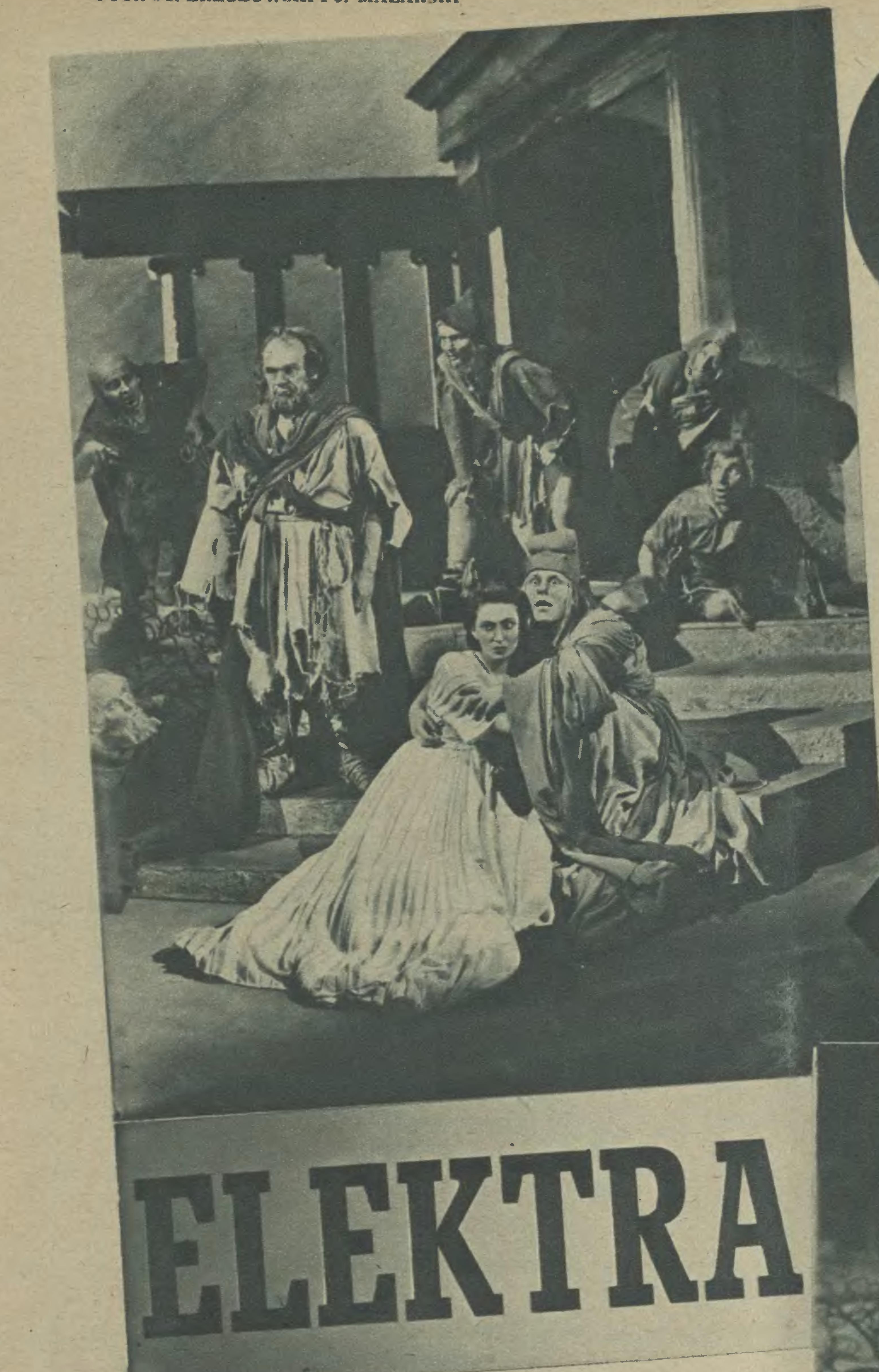 Łódź, Scena Poetycka Teatru Wojska Polskiego: polska prapremiera Elektry Jeana Giraudoux w przekładzie Jarosława Iwaszkiewicza, reżyserii Edmunda Wiercińskiego i scenografii Teresy Ruszkowskiej, z muzyką Romana Palestra. Zofia Mrozowska w roli tytułowej, Aleksander Zelwerowicz lub Jacek Woszczerowicz – Żebrak, Jan Kreczmar – Egistom, Zofia Małynicz – Klitajmnestra.